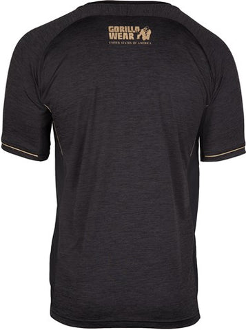 The Fremont T-Shirt is everything you need during hot workouts or fight training. This T-shirt is lightweight, breathable, quick-drying, and sweat-wicking. The breathable polyester and mesh sides keep you cool and focused. The smooth fabric is also perfect for grappling and martial arts. The top features Gorilla Wear logos on both the front and back. Available in mixed colors Black/Gold, Black/White, and Burgundy Red/Black. The Fremont T-Shirt pairs perfectly with our Wenden Tracksuits which are available in the same colors, so be sure to check those out as well!