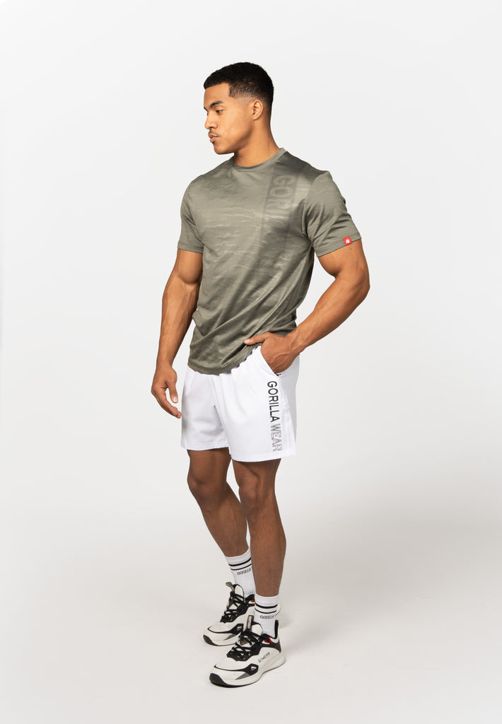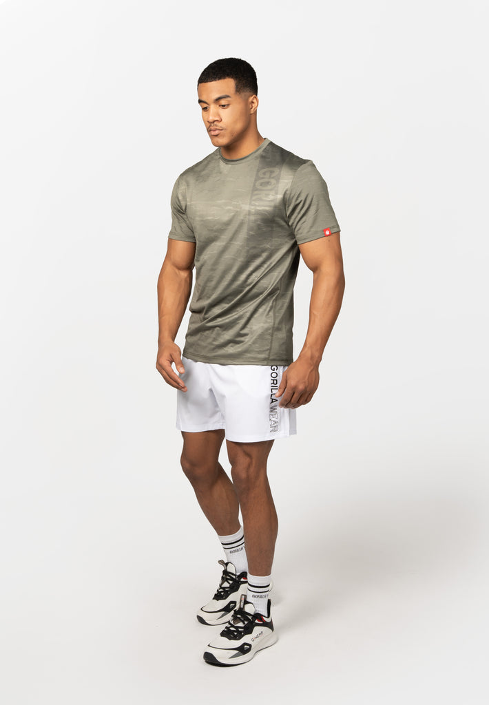 Suunniteltu suorituskykyyn, tehty arjen mukavuuteen. Westley T-Shirt on valmistettu kevyestä ja hengittävästä mesh-materiaalista, joka pitää olon viileänä rankoissakin treeneissä. Sublimoitu printti takaa, että värit ja yksityiskohdat säilyvät kirkkaina pesusta toiseen. Normaali istuvuus luo siistin ja sporttisen lookin, joka toimii niin salilla kuin vapaa-ajalla. Täydellinen lisä Gorilla Wear -valikoimaasi.