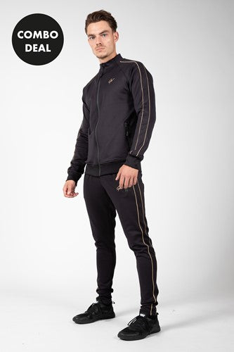 Step up your game with the Wenden Set! This awesome set is perfect for layering your outfit and keeping you warm during your workouts. Of course, it's also very comfortable to wear during off days and casual occasions. The embroidered stripes on the sleeves and legs and the GW Signature branding really boosts your look.